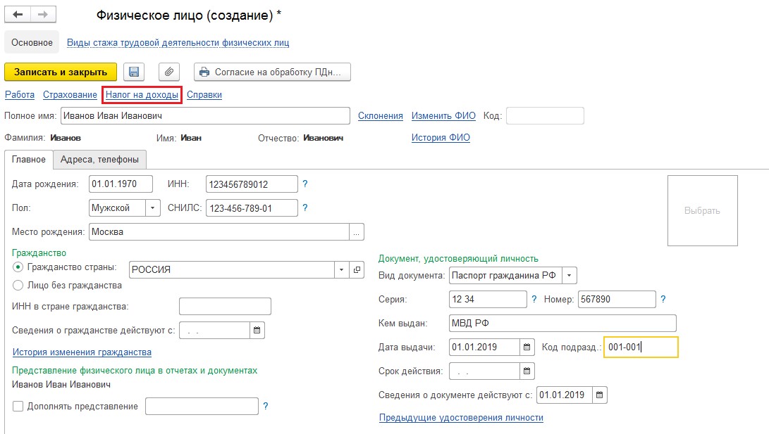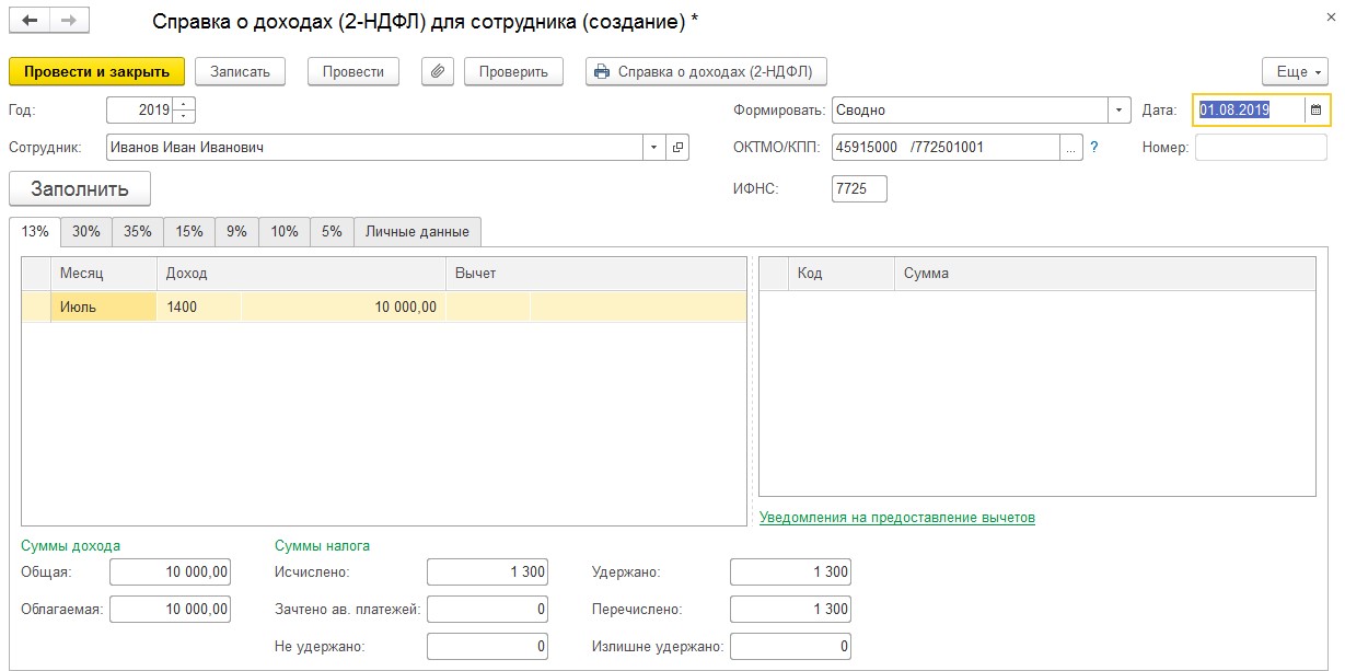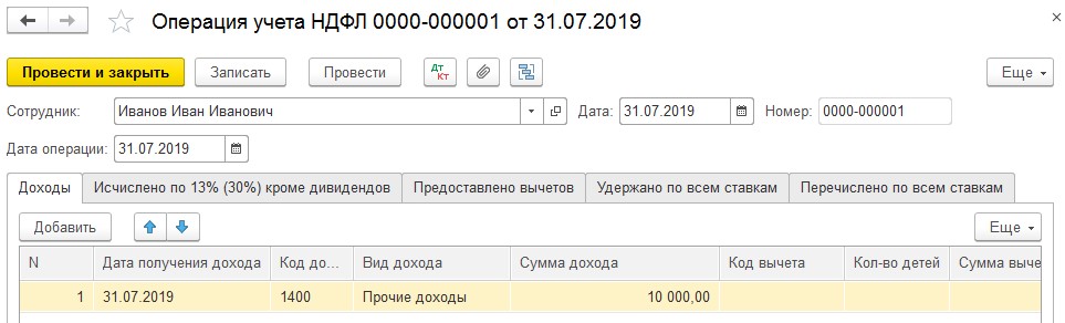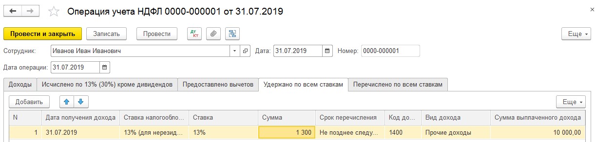 Последняя закладка нужна для реквизитов платёжного документа для перечисления НДФЛ. После её оформления можно делать проводку документа.