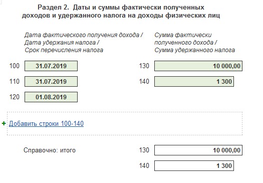 В разделе 2 отмечаются даты: получения, удержания, крайний срок перечисления НДФЛ.
