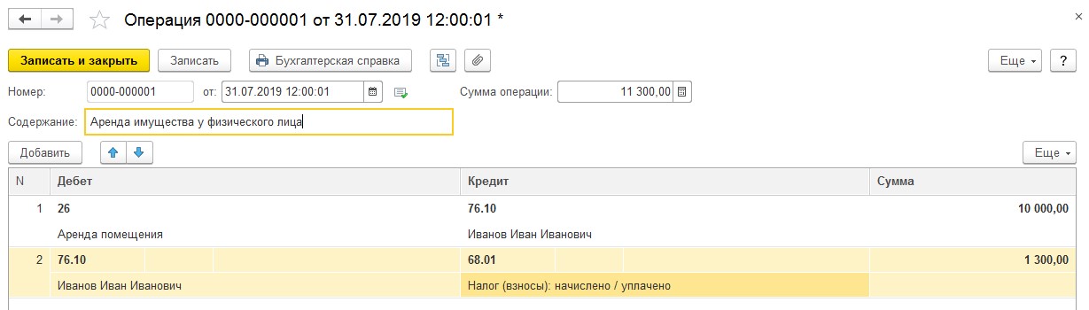 Учёт аренды имущества у физического лица в 1С: Бухгалтерии