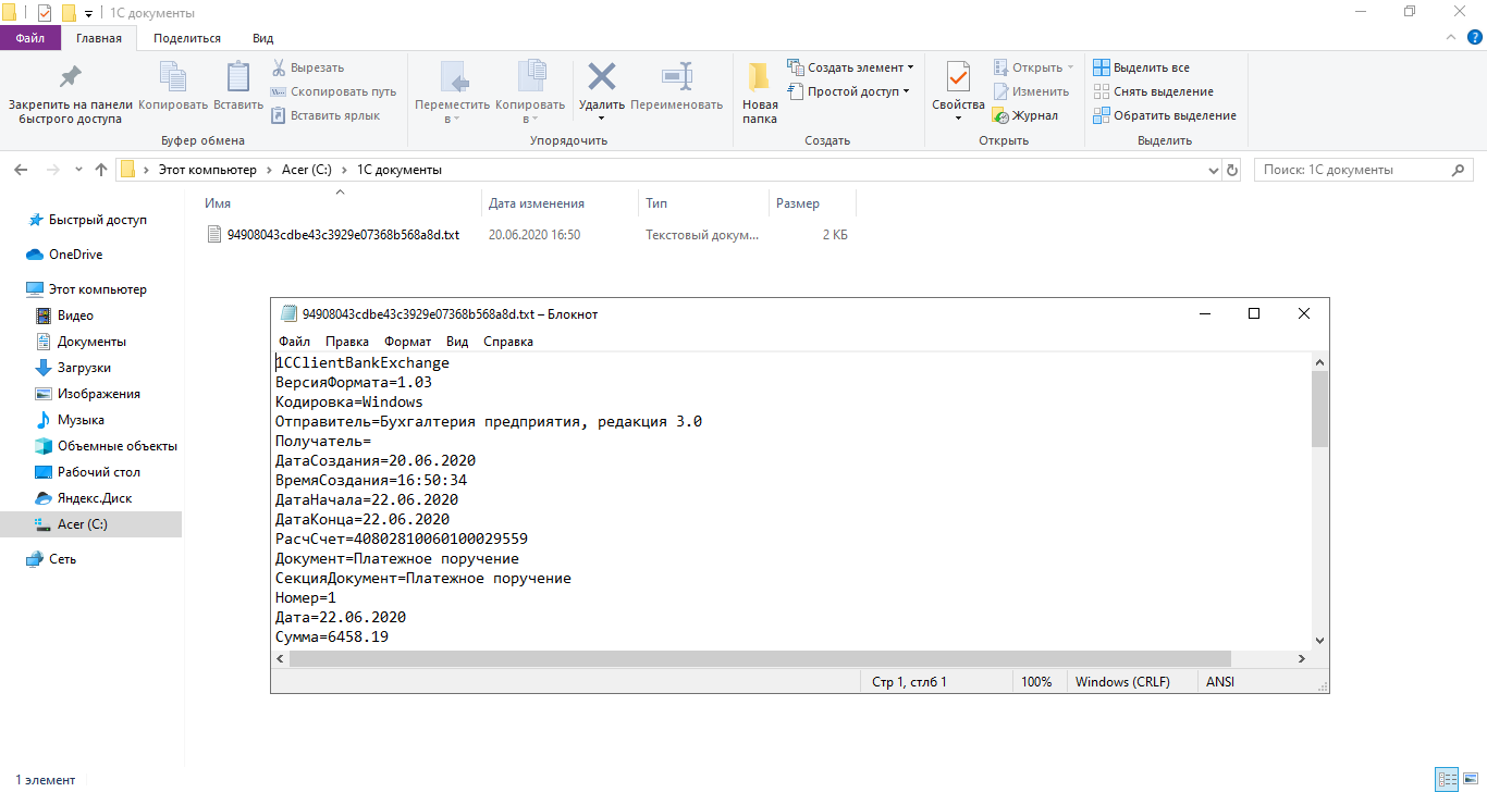 На этом этапе сформируется файл формата «1С_to_kl.txt». Его необходимо загрузить в банк-клиент. Отчет о выгруженных платежных документах отражается в окне «Обмен с банком». Далее необходимо выбрать «Отчет о выгрузке». Отчет будет содержать платежки, выгруженные в файл для последующей загрузки в «банк-клиент». Доступна опция печати или сохранения в любом формате.