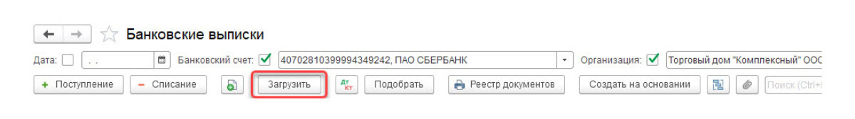 В журнале «Банковские выписки» необходимо выбрать «Загрузить».