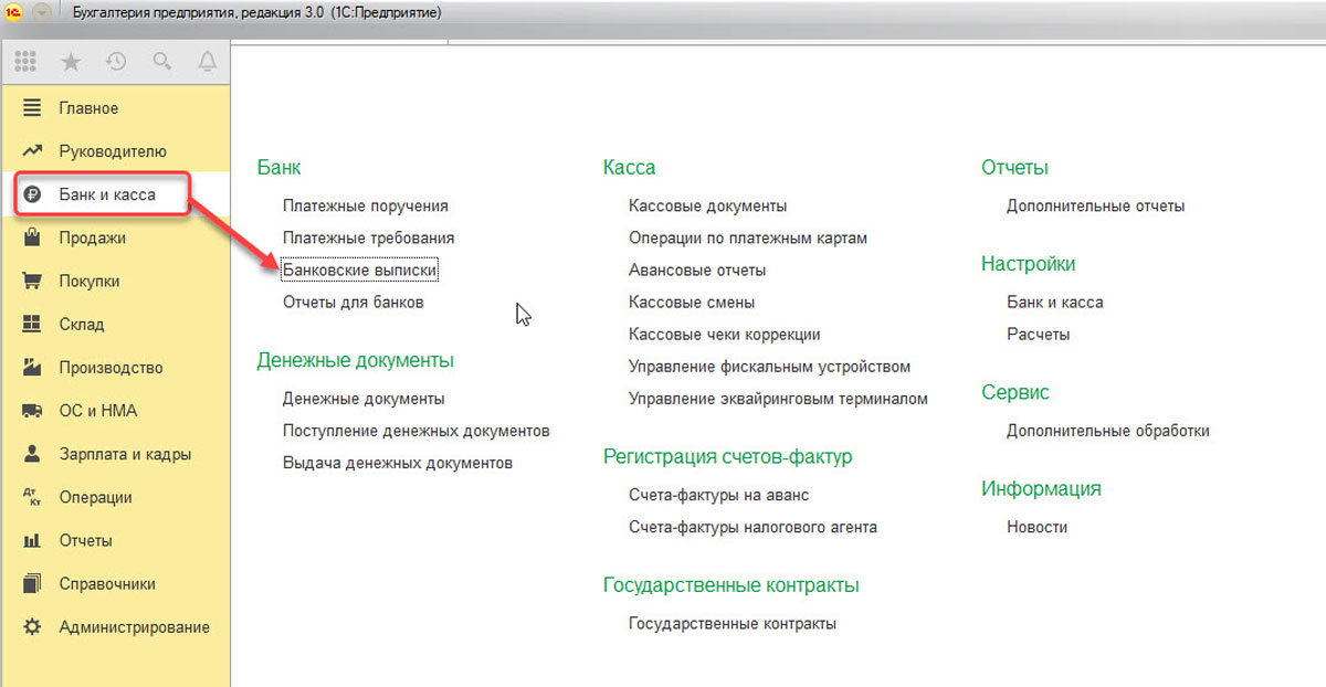 Пользователи часто сталкиваются с необходимостью загрузки/выгрузки выписки банка и проведения выписки в товароучетной программе 1С 8.3. С помощью этой статьи вы узнаете, как работать с пунктом Банковские выписки в 1С.
