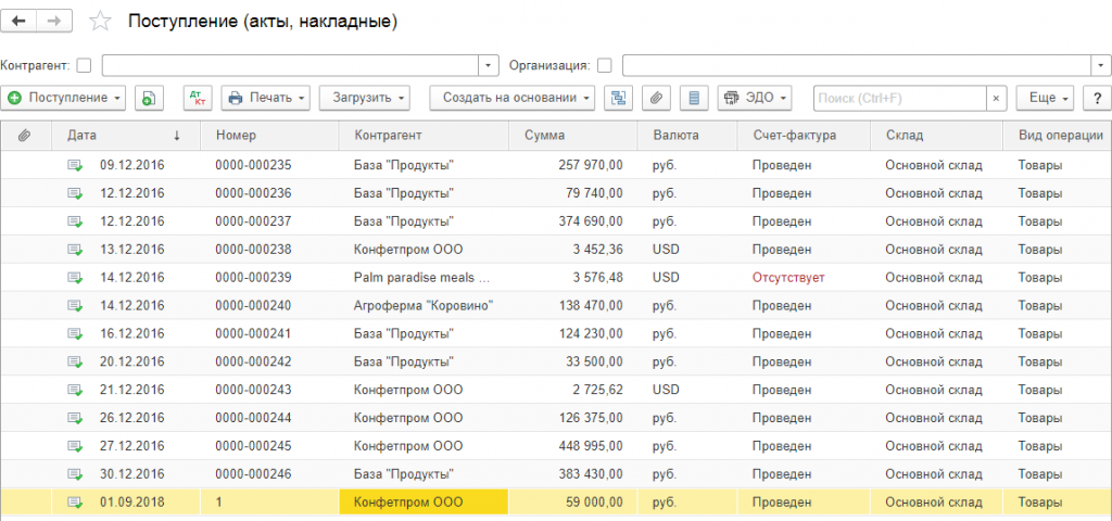 Если необходимо просмотреть весь список документов или только определенный тип в 1С существует «Форма списка». В этих списках можно легко отобрать нужные документы, быстро изменить их или произвести поиск данных.