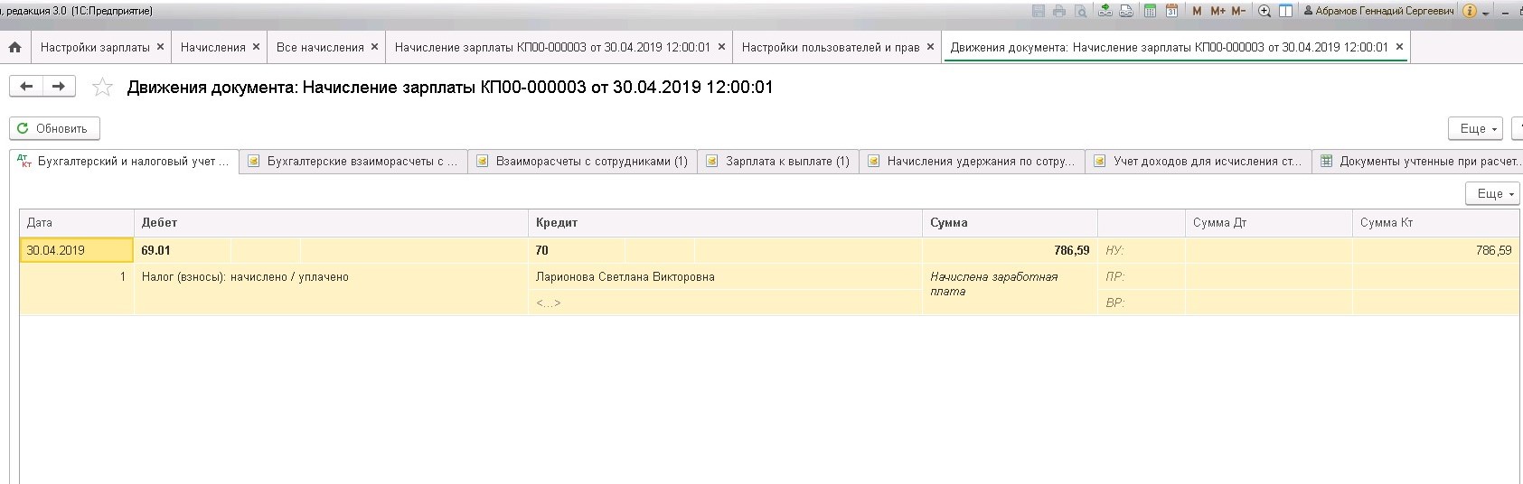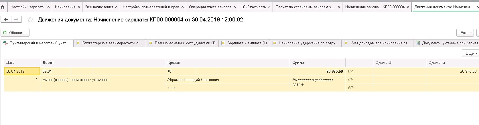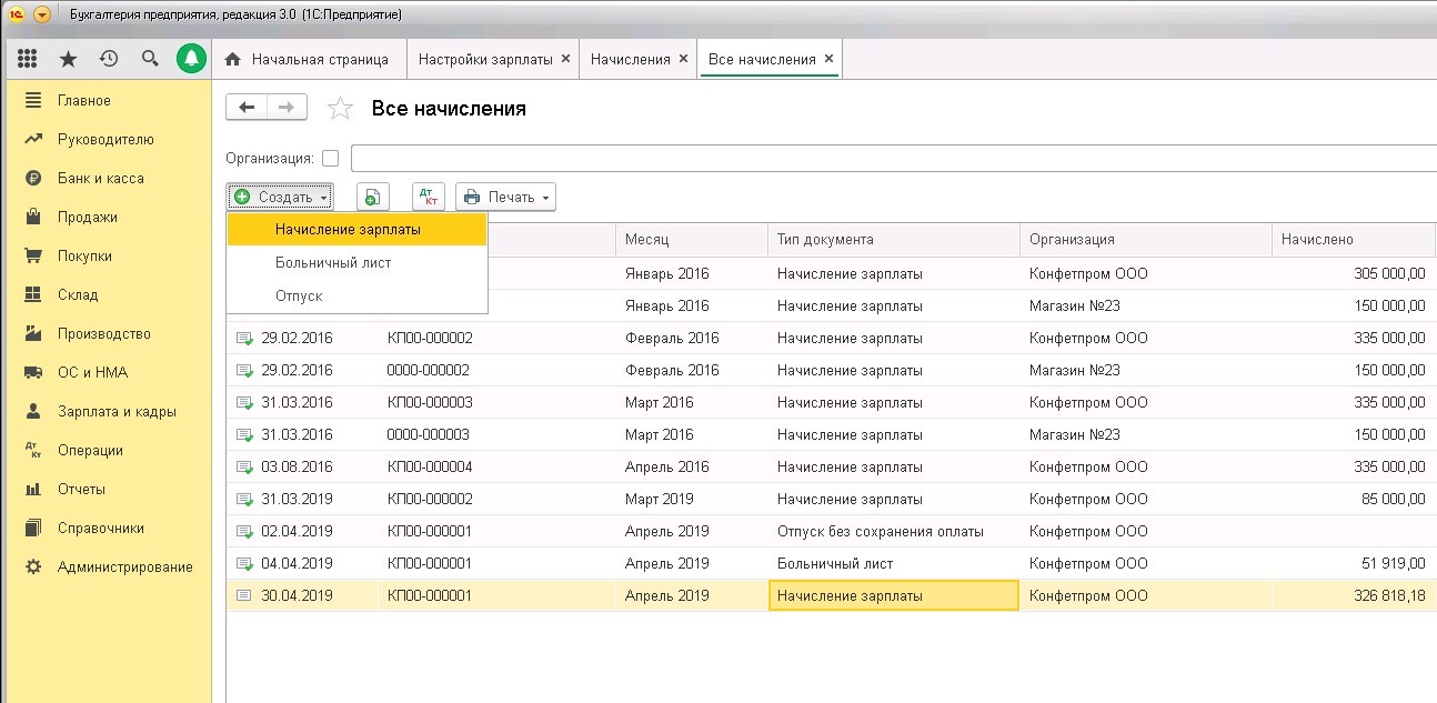 • Теперь переходим в подраздел «Начисления», ранее нажав на «Расчет зарплаты».