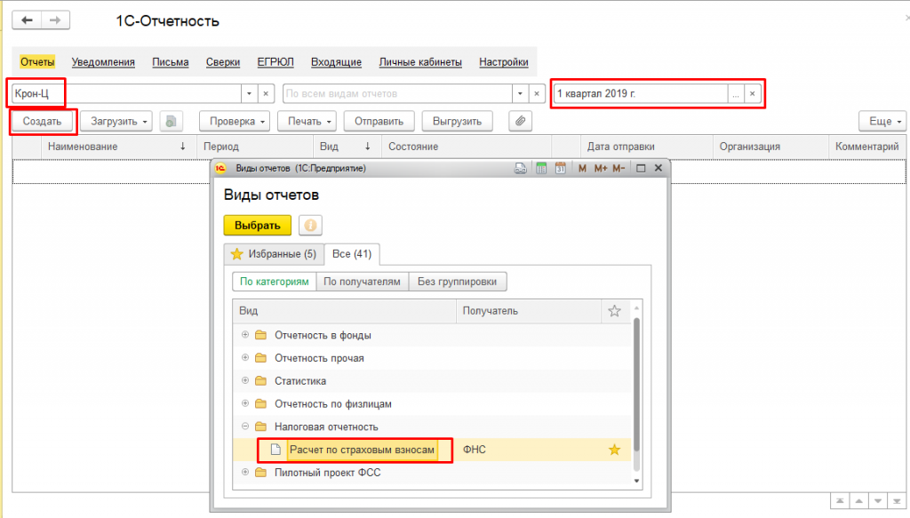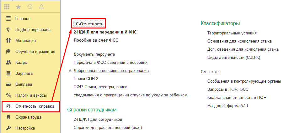 Для того чтобы сделать формирование отчета РСВ с помощью режима «1С-Отчетность» нужно: