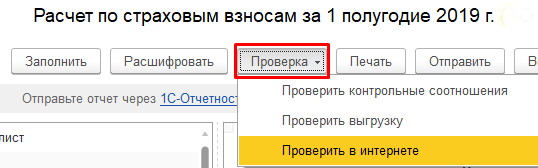 Для того чтобы провести проверку на наличие несоответствий и ошибок в расчетах РСВ необходимо нажать на «Проверка». Данный отчет может быть проверен не только алгоритмом, встроенным в 1С ЗУП, но и другими сторонними программами, которые могут быть установлены на компьютере.