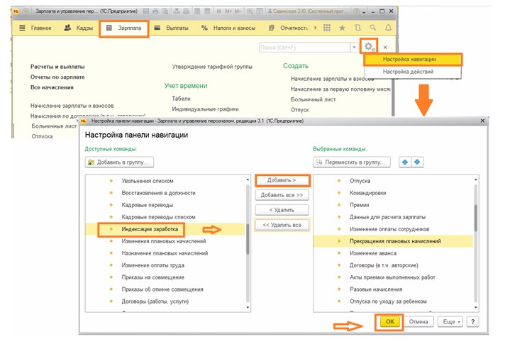 Индексация начислений проводится следующим образом :  Зарплата – Индексация заработка – Создать. Раздел индексация заработка можно найти и через настройки навигации.