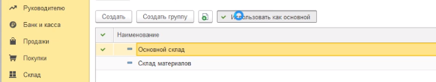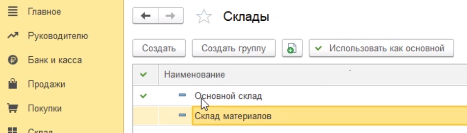 Видите, что в этом справочнике складов программа сама по умолчанию поставила галочку у основного склада, что его использовать как основной.