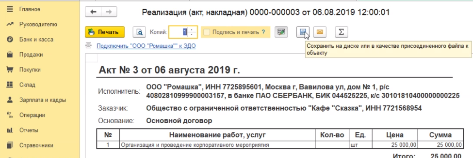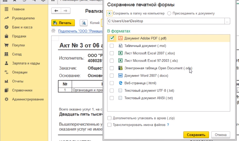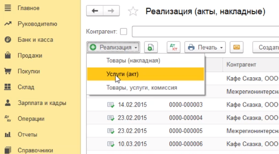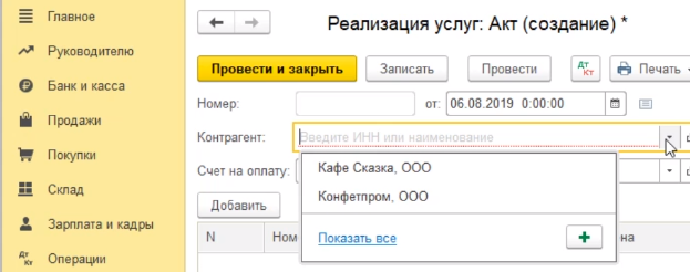 Как создать акт на оказание услуг в 1С Бухгалтерия 8.3