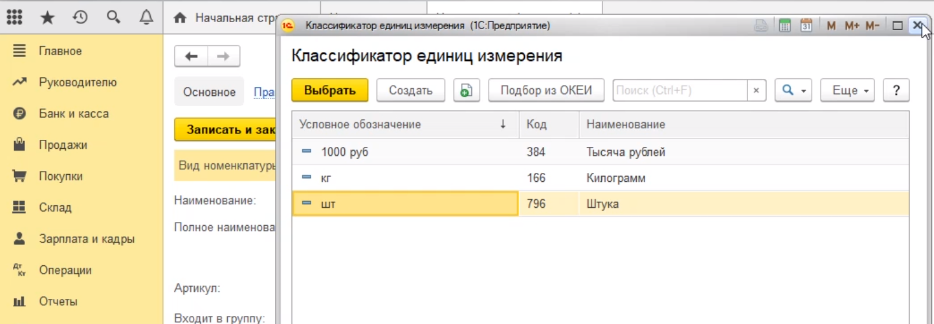 Это могут быть штуки, килограммы или другие единицы измерения, которые мы можем в этот классификатор добавить.