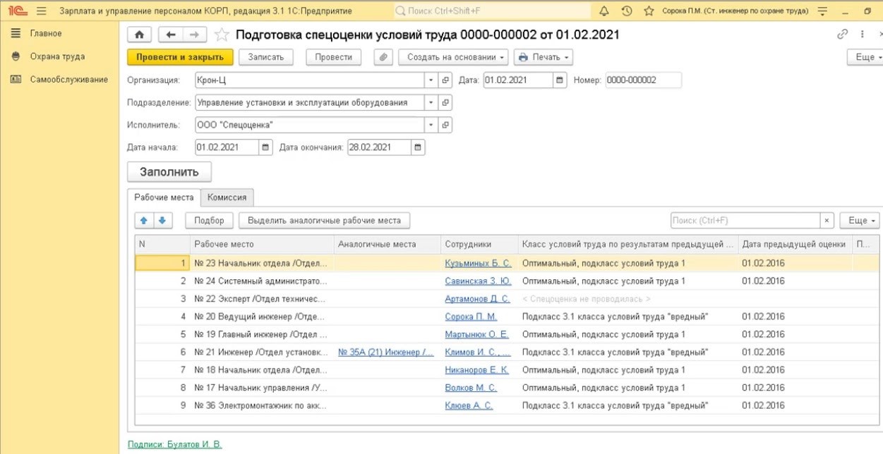 В 1С есть отчеты, чтобы анализировать условия труда: