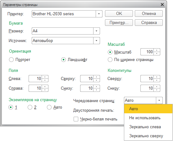 Функция печать документов в программах «1С Предприятие» имеет свои особенности настроек, при выводе на печать готового файла.
