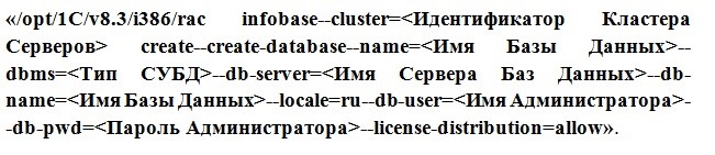 Перед тем, как выполнить создание информационной базы, понадобится наличие идентификатора для кластера, для его получения вводят – /opt/1C/v8.3/i386/rac_cluster_list.