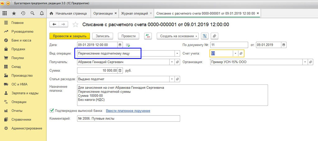 Работнику перечислены деньги в подотчет на покупку ГСМ.