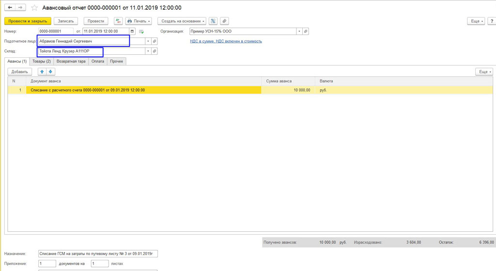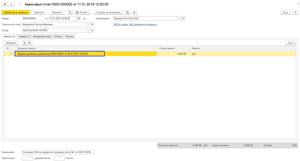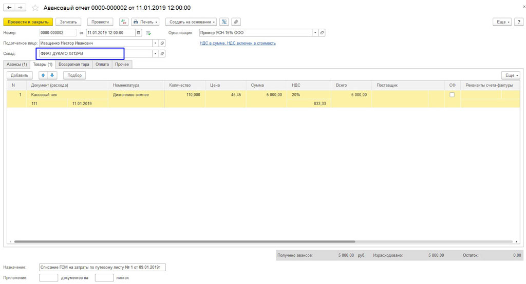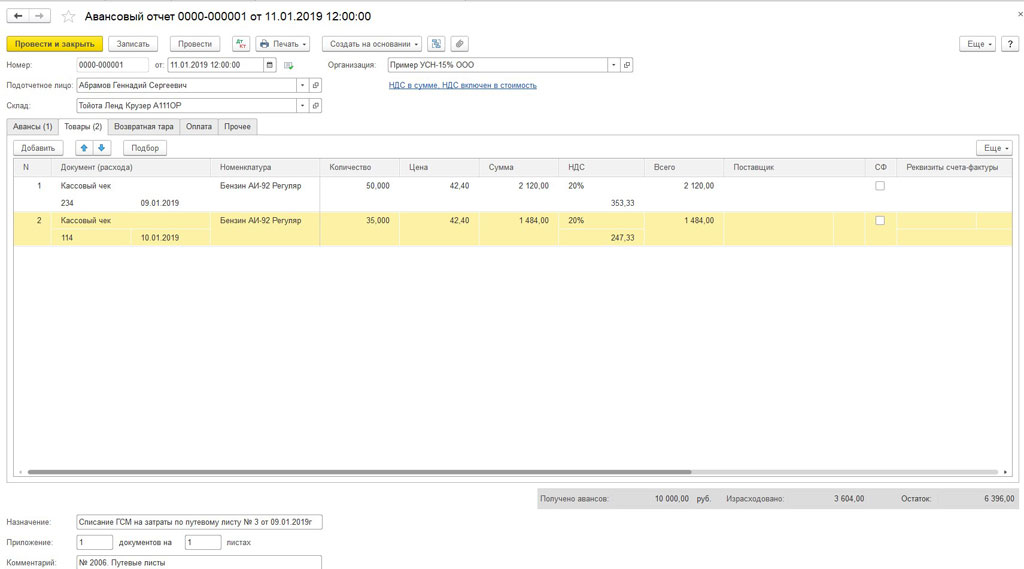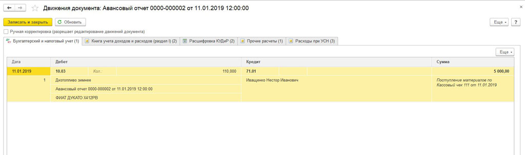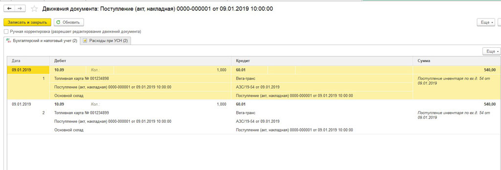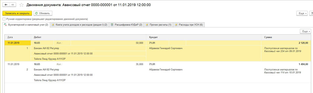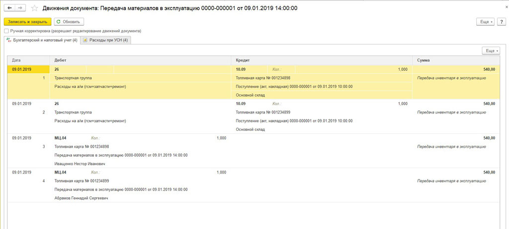 В учете сформированы движения (карта топливная привязана к рабочему).