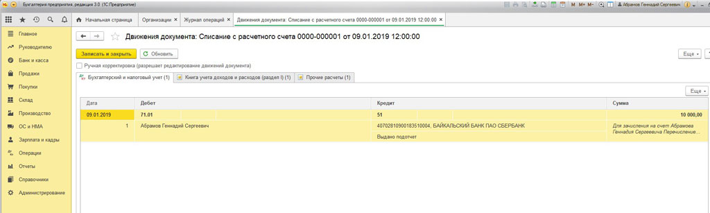 Сотрудник принес авансовую отчетность в бухгалтерию.
