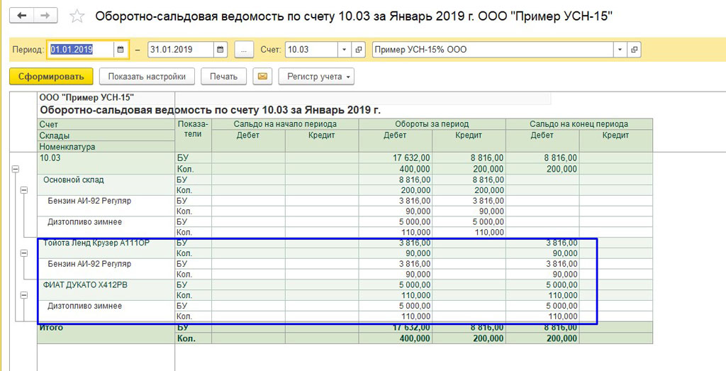 • ГСМ по путевому бланку сверх норм списывается на непринимаемые растраты определенного периода:
