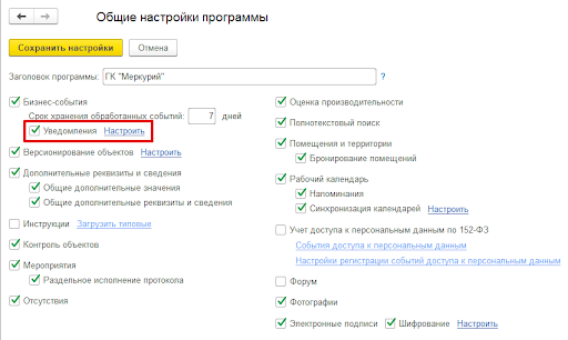 После всех указанных настроек система начнет рассылать уведомления нужным пользователям о всех событиях и мероприятиях, нуждающихся в огласке.