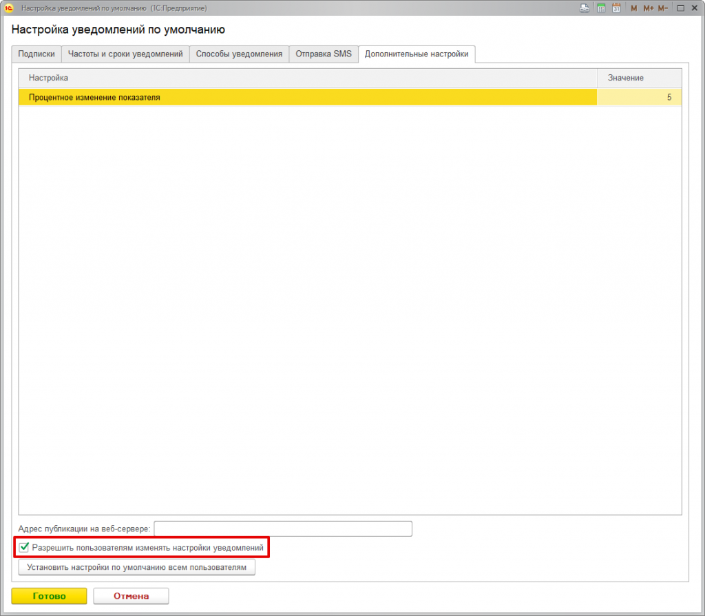Нажав на "Дополнительные настройки", пользователь сможет указать дополнительные параметры, такие как: дополнительные реквизиты писем, адреса публикаций, возможность самостоятельной настройки уведомлений для каждого пользователя.