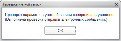 Заполняем нужные строки - указываем логин и пароль, сервер исходящей почты, порт и протокол SLL. При завершении можно проверить правильность введенных данных с помощью команды "Проверить учетную запись". При успешном вводе, система уведомит вас таким окном: