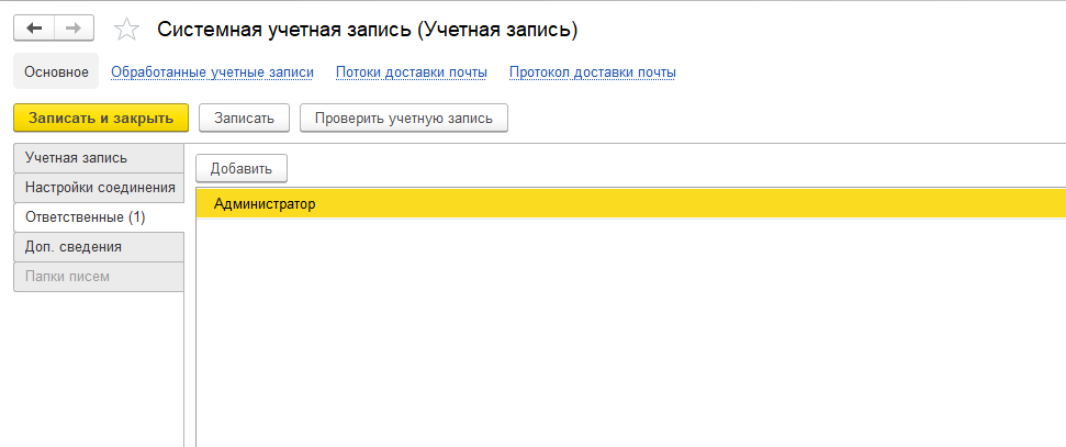 Во вкладке "Ответственные" нужно указать пользователей, которые будут иметь доступ к письмам учетной записи.