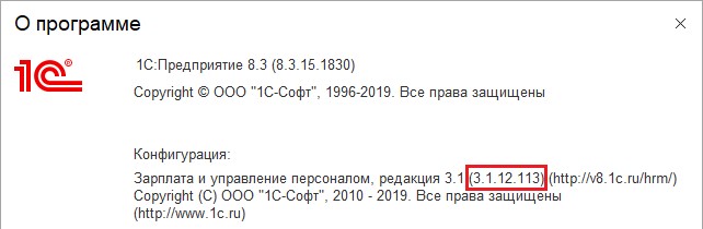 Рассмотрим ввод подобного заявления в 1С: ЗУП. Сначала проверьте, какая версия программы у вас скачана. Для этого в правом верхнем углу выберите пункт меню «О программе».