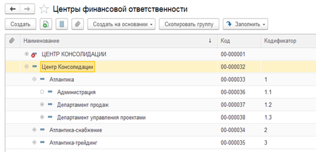 Структура ЦФО в 1С:ERP