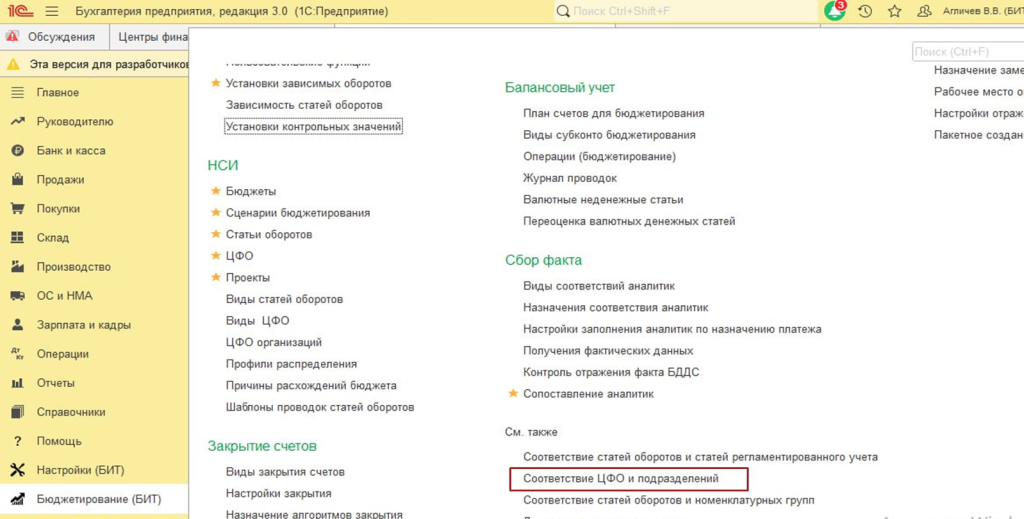Настройка соответствия ЦФО и подразделений в БИТ.ФИНАНС