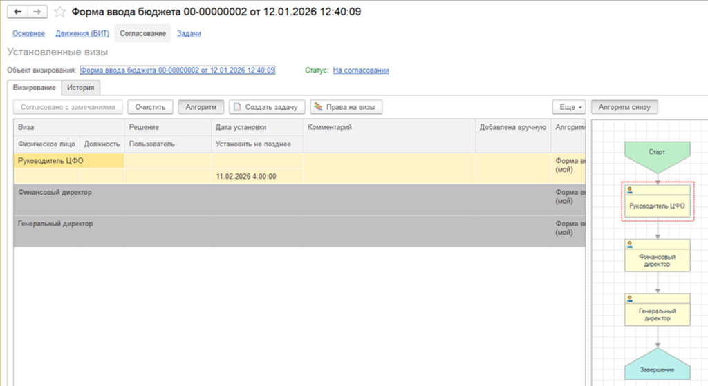 Настройка алгоритма согласования форм ввода бюджета с участием руководителя ЦФО в БИТ.ФИНАНС