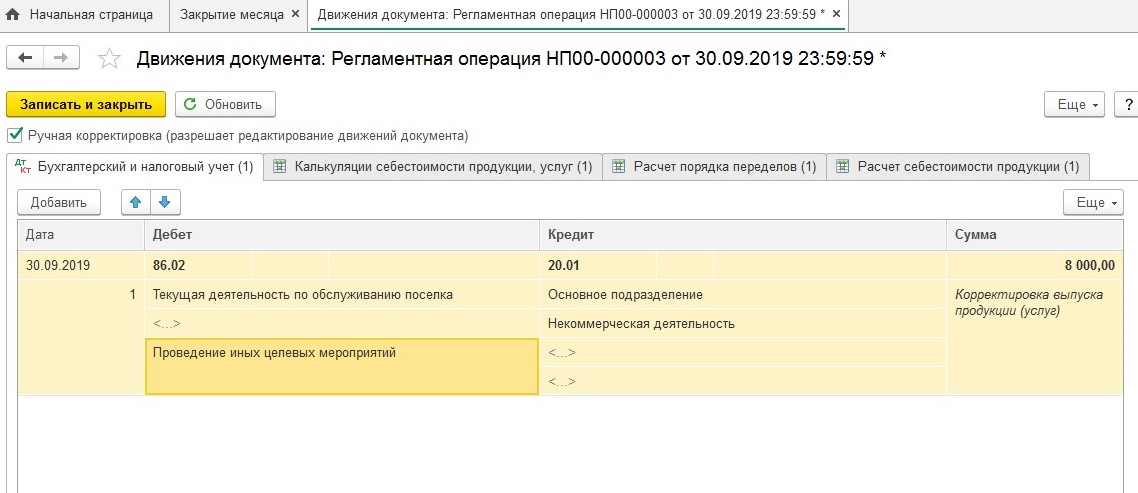 Бухгалтеры НКО при списании ТМЦ иногда допускают ошибку, непосредственно списание отражая сразу же на счет 86. Связано это с тем, что закрывает 1С: Бухгалтерия 20,26 счета именно на 90 счет, не на 86, поэтому при списании бухгалтеры отражают затраты на 86 счете. Но, этот выступает нарушением. Учет затрат не предусмотрен планом счетов в обходе двадцатых счетов.