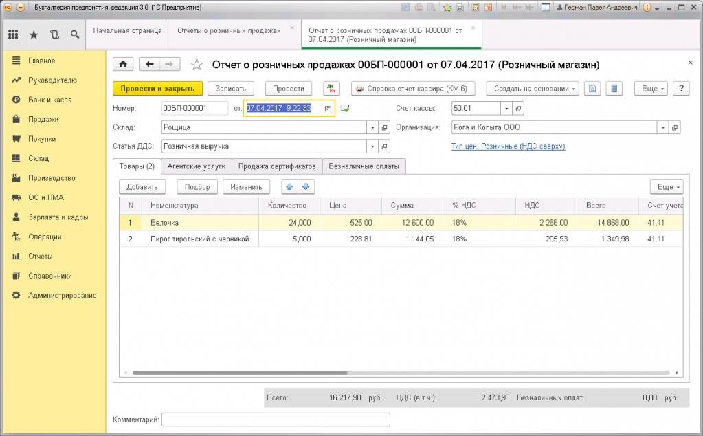 Учет операций розничной торговли в 1С: Бухгалтерия