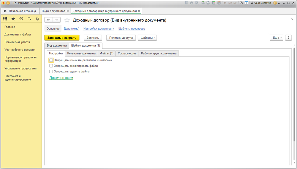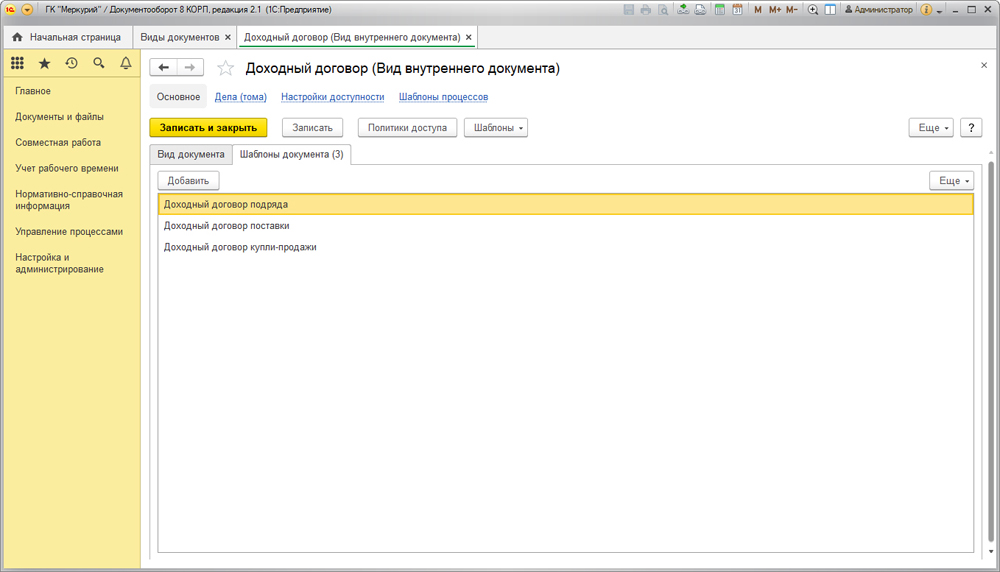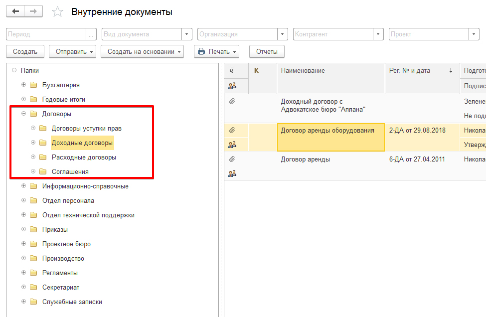 У представляемой системе «1С:Документооборот» присутствует эффективный функционал, дающий возможность использовать процедуры любой сложности для обработки договоров и сопровождающих их документов.