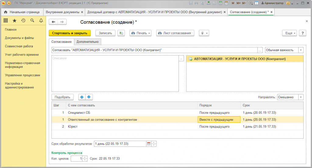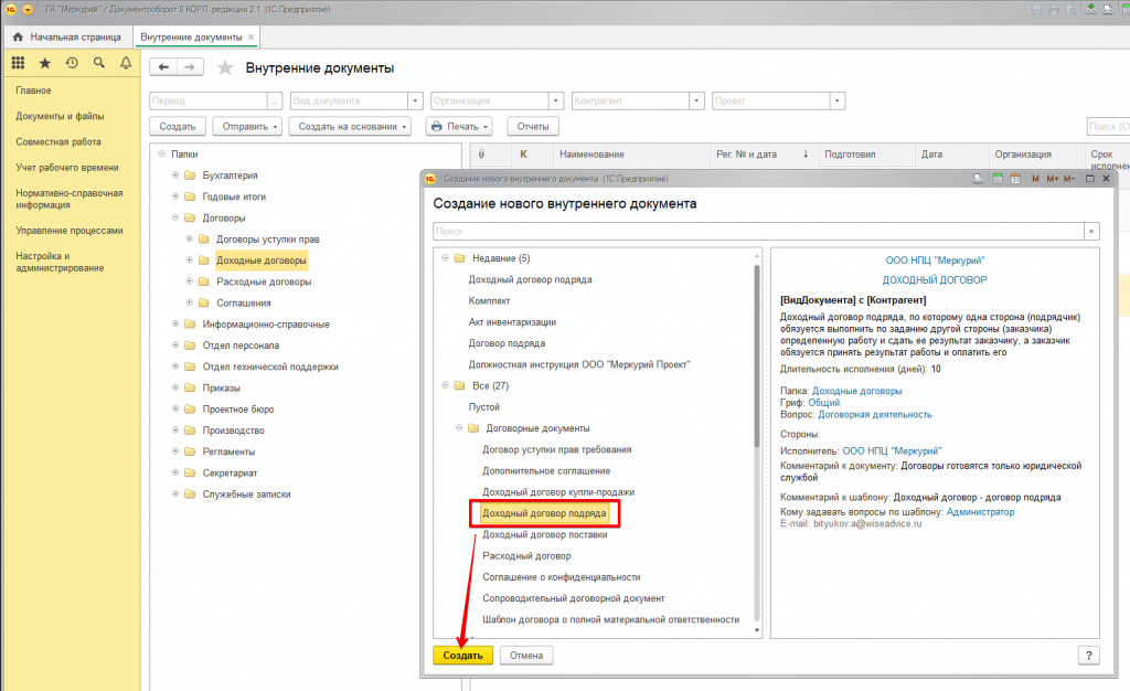 Функциональные возможности системы «1С:Документооборот» в организации процесса контрактации
