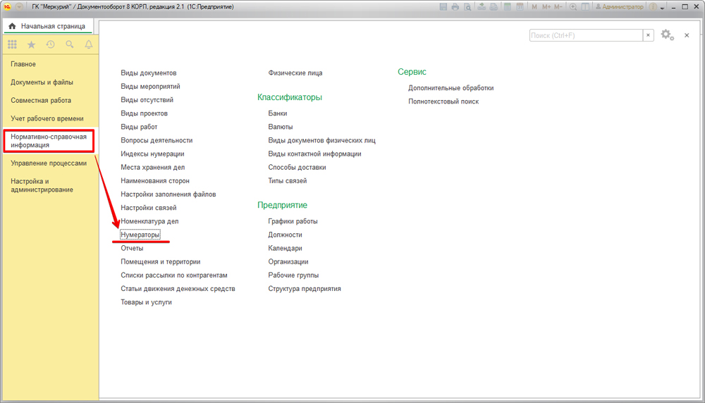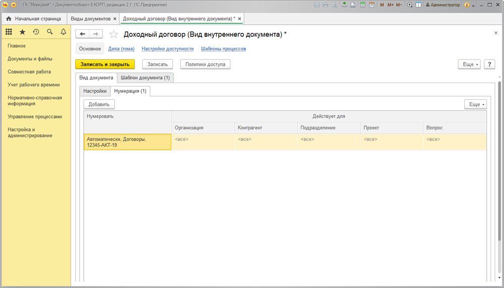 На карточке каждого документа следует внести все его параметры для его должного структурирования. Начинать следует со вкладки «Нумерация».