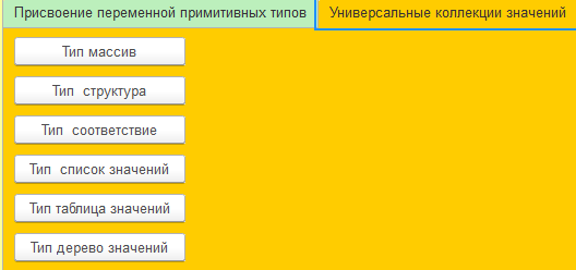 Ранее мы уже рассматривали универсальные коллекции значений Массив и Соответствие. В этот раз мы их рассмотрим подробнее их и другие типы коллекций. Эта статья – логическое продолжение материала про Типы значений Неопределено и Тип, здесь мы продолжаем работать с той же внешней обработкой.