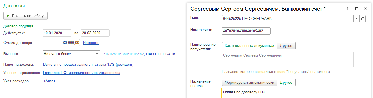 - Проверьте реквизиты договора и заполните данные банковского счета Сергеева С.С.
