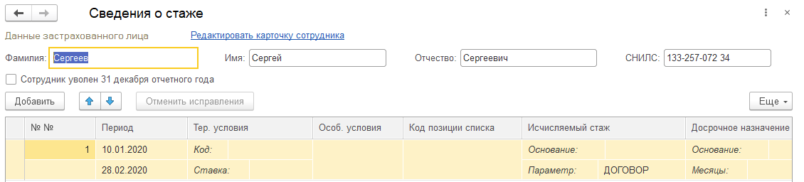 - Введите личные данные Сергеева С.С. в справочник «Сотрудники»