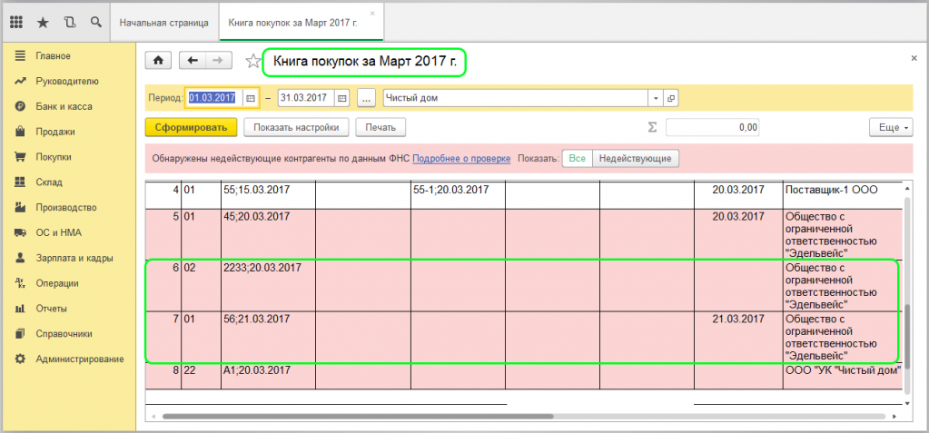 Записи об авансовом платеже и поступлении можно будет увидеть в «Книге покупок»: