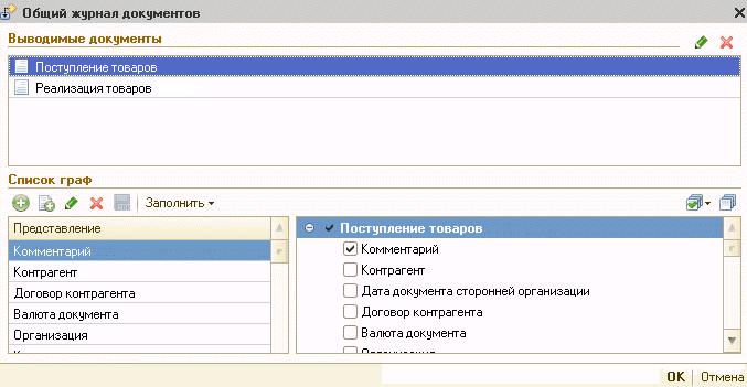 Чтобы добавить новые графы, необходимо перейти в нижнее поле интерфейса. В левой части будет находиться список с наименованиями, а в правой половине следует отметить галкой соответствующие реквизиты. Это позволит программе при сворачивании показывать, где уже были установлены соответствующие реквизиты, а где еще нет. Это и является настройкой универсального журнала, который можно сохранить.